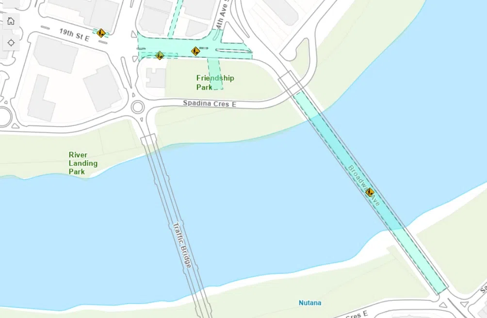 The construction work will mean the bridge, the pedestrian walkway, Broadway Avenue, Saskatchewan Crescent, 19th Street and 3rd and 4th Avenue traffic will be affected.