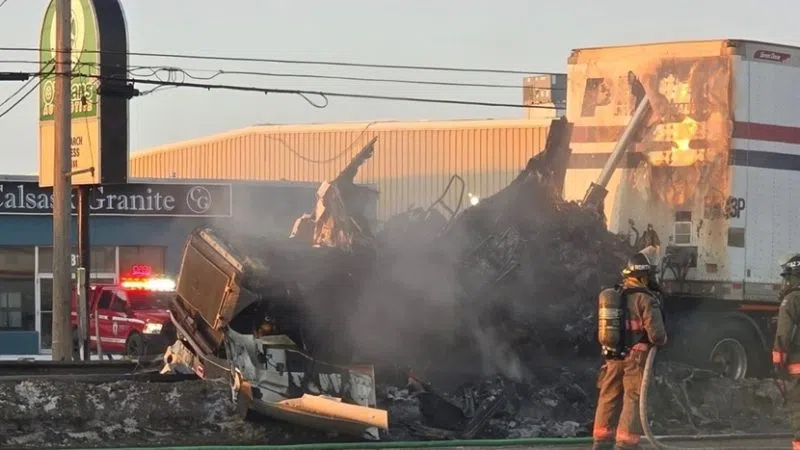 Update: Circle Drive North at Millar Avenue reopens hours after semi catches fire after hitting light standard