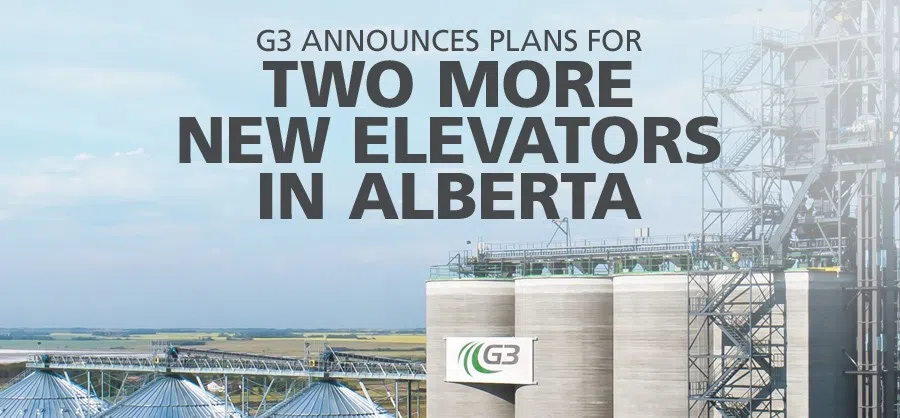 G3 has three other elevators under construction in Alberta (Morinville, Wetaskiwin and Carmangay) and a fourth at Maidstone, Saskatchewan.