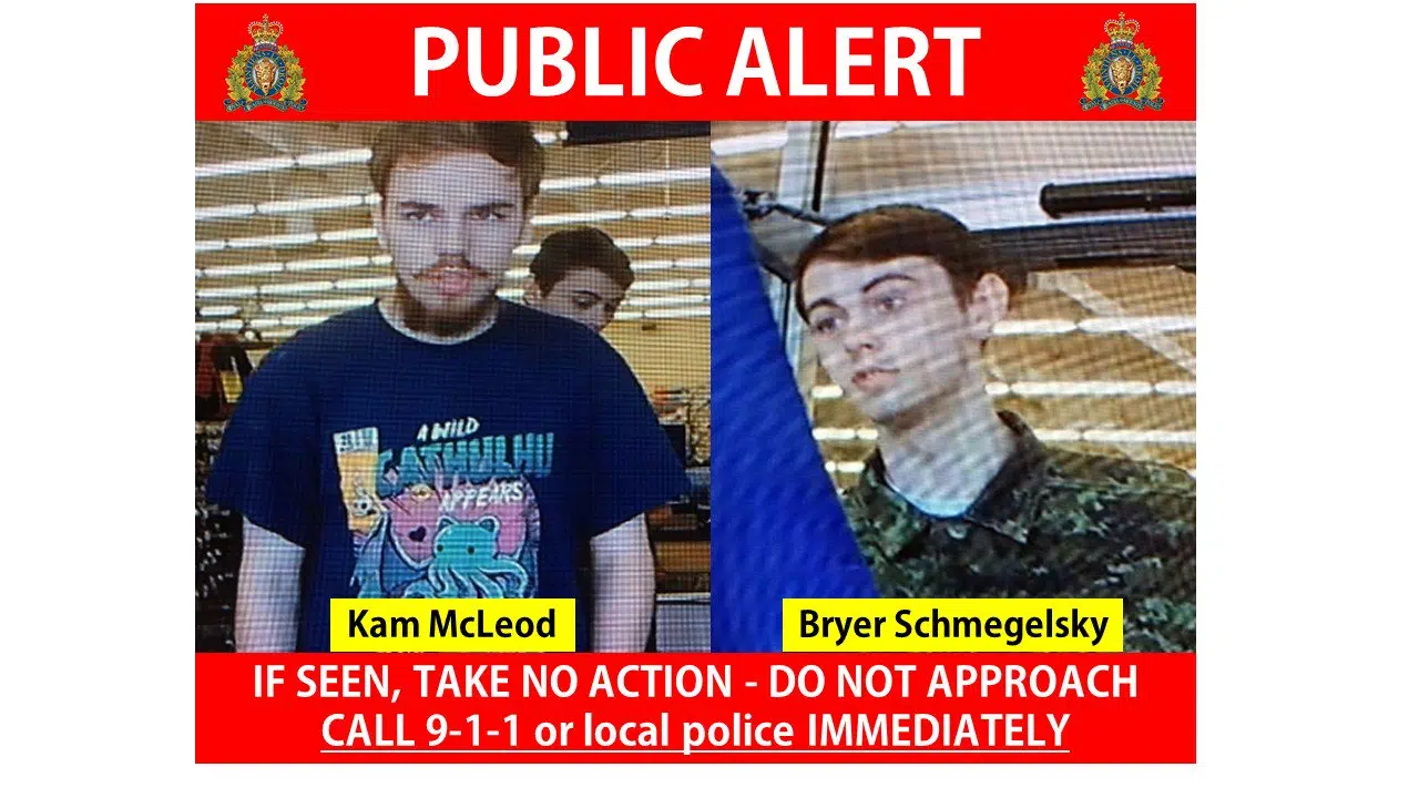 18-year-old Bryer Schmegelsky and 19-year-old Kam McLeod are considered to be armed and dangerous. Both have been charged with 2nd degree murder and Canada wide warrants have been issued for their arrests. (CKRM)