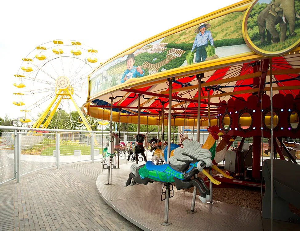 Always stay 2 metres apart from those not in your group and to allow for proper physical distancing the carousel will not be operating at full capacity. Face masks are required on rides, water fountains are not available, washrooms are open at limited capacity.