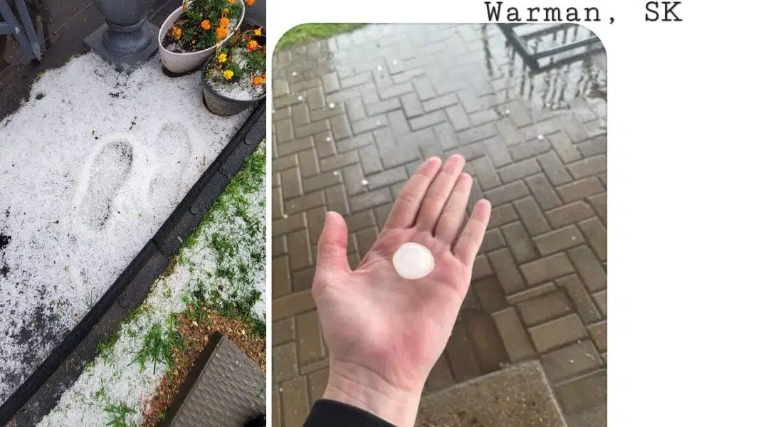 Hail falls over Saskatchewan Saturday evening