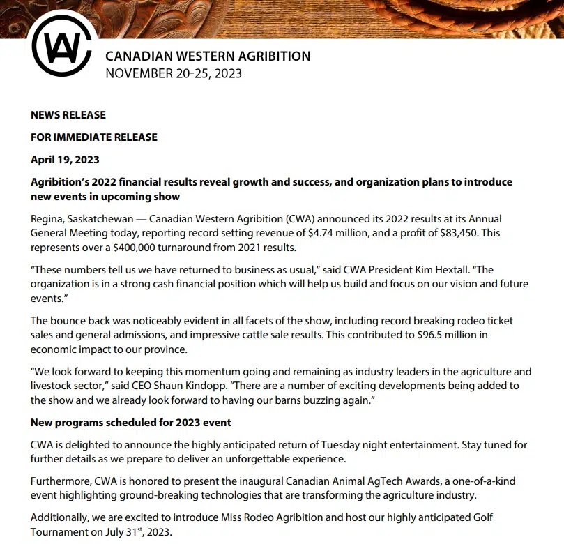 The Regina agricultural event is back in the black after losing money in its first show following the COVID pandemic last year.