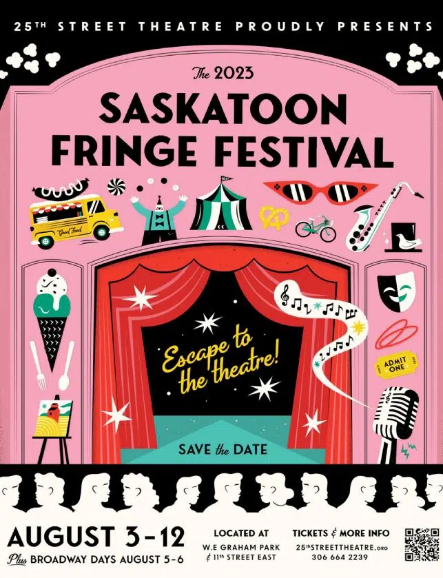 CJWW is excited to support the 2023 Saskatoon Fringe Festival happening August 3 – 12. Celebrate the arts at a 10-day community festival in the heart of the Broadway District of Saskatoon. The festival will take place in W. E. Graham Park (behind Ecole Victoria) and on 11th Street E. In-person theatre performances will take place at The Refinery, The Broadway Theatre and The Cosmopolitan Senior’s Centre.