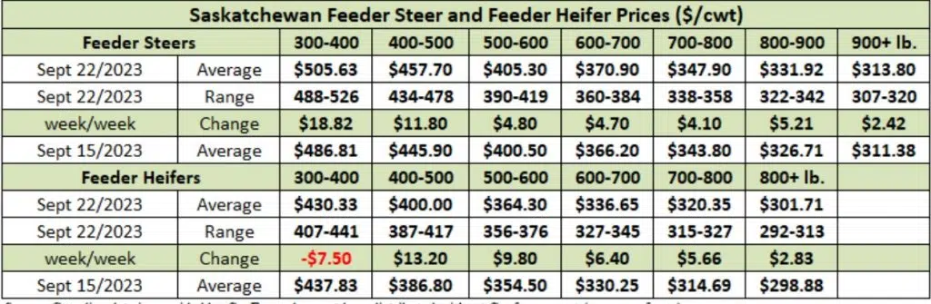 Saskatchewan feeder cattle sales were 12,049 head last week compared to 11,292 marketed during the previous week. Year-to-date Saskatchewan feeder cattle marketings are three percent higher than last year at 294,779 head.
