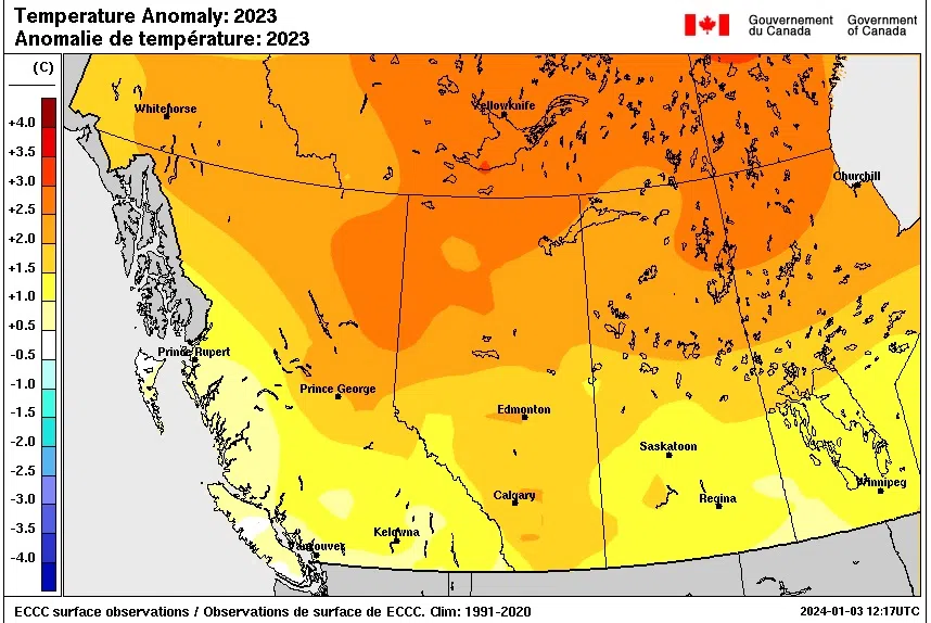 Lang also compiled the averages for all of 2023. While the temperature differential is smaller, Lang says it is very significant because it includes the numbers from all 12 months.