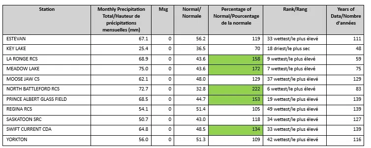 It was the first May in several years for above normal precipitation in nearly every corner of Saskatchewan.