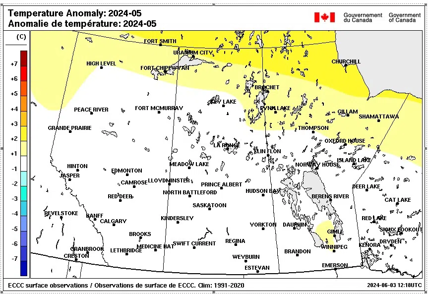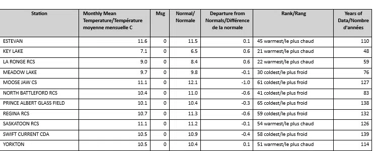 Environment and Climate Change Canada meteorologist Terri Lang says it was wetter than usual in 10 of the 11 reporting centres, with only Key Lake in northern Saskatchewan following short. La Ronge, Meadow Lake and North Battleford all had top ten Mays for precipitation.