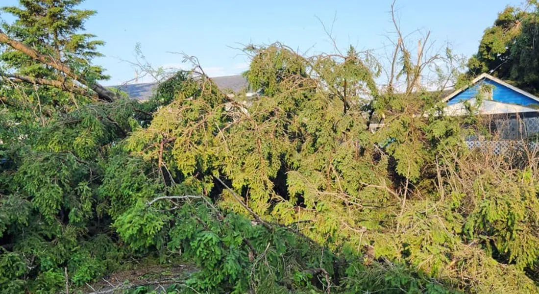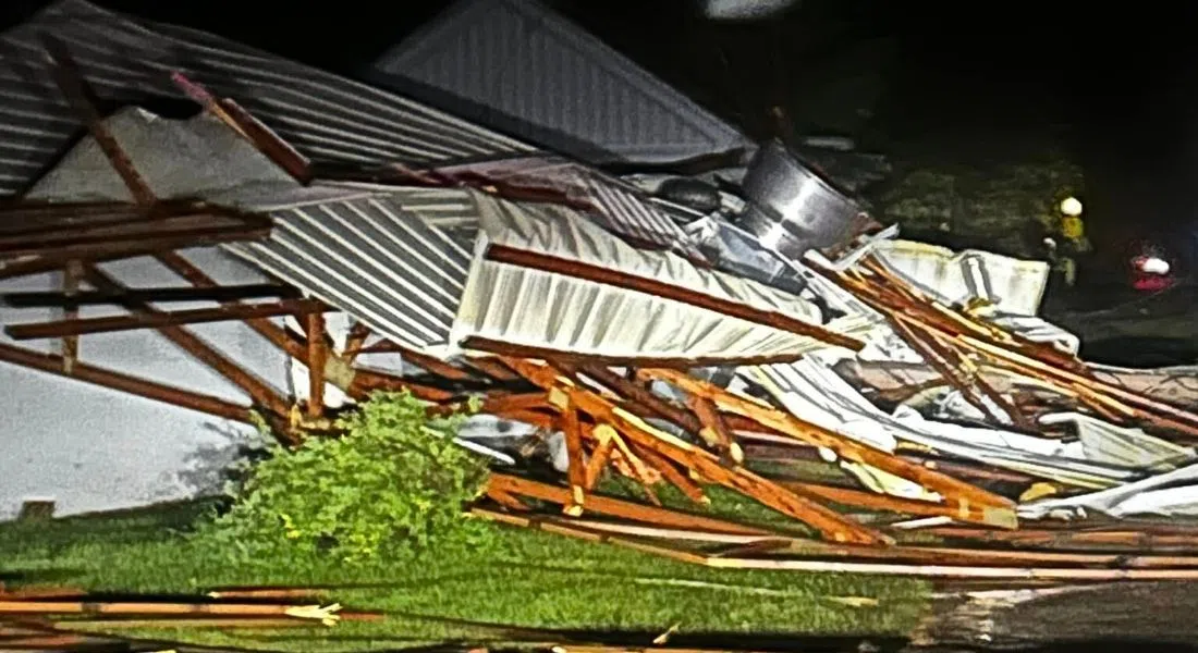 The Mayor of Carrot River, Roman Charko, believes they may have had a tornado. The power has been out since midnight with many power poles downed. Mayor Charko says, “The roof of our community hall they say is pretty well toast, quite a few houses, power poles down, there are trees everywhere, one restaurant – probably half the roof or more is gone. There is roof gone off a car wash. There are some bins down in the industrial part of town. I understand, the seed cleaning plant, the building blew over.” He adds that one building not far from him went west, while other things blew east, so that’s why he believes it may have been a tornado. To top it off, Carrot River also had hail.