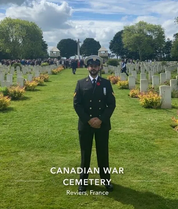 Sailor 1st Class, Manjovan Singh Sangha, originally from Lloydminster attended the ceremonies and tours in France last June along with other reservists.