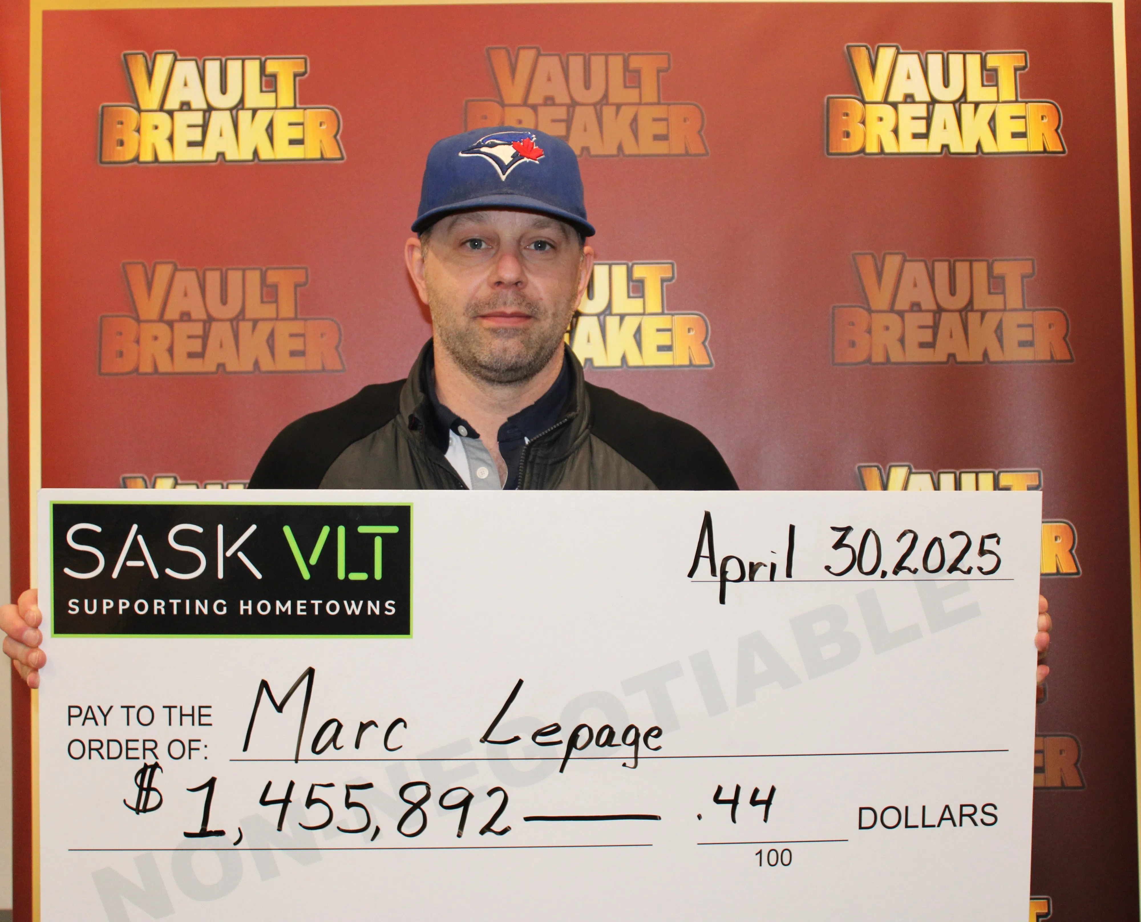 The Western Canada Lottery Corporation says Marc LePage of Saskatoon won the grand jackpot on Vault Breaker at the Boston Pizza on Nelson Road