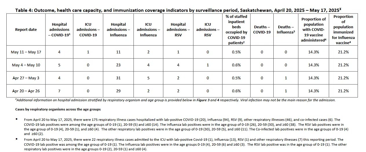There were only six influenza admissions to Intensive Care Units (ICU) over the past two weeks. There were no influenza or COVID related deaths between May 4th and May 17th. There were only nine hospital admissions for COVID during that same period, which included one person going to the I.C.U.