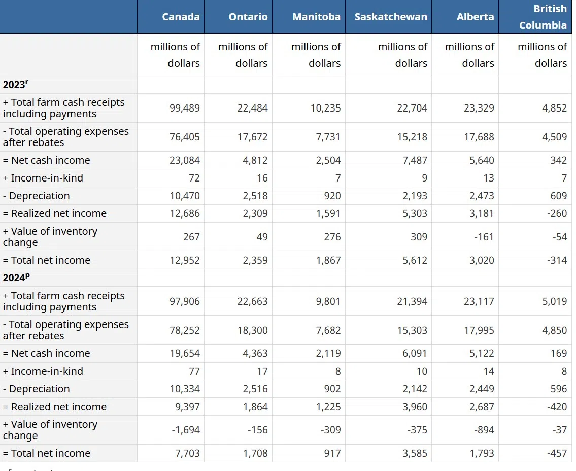 Breaking it down by province, Saskatchewan’s total net farm income dropped from $5.6 billion in 2023 to $3.6 billion last year.