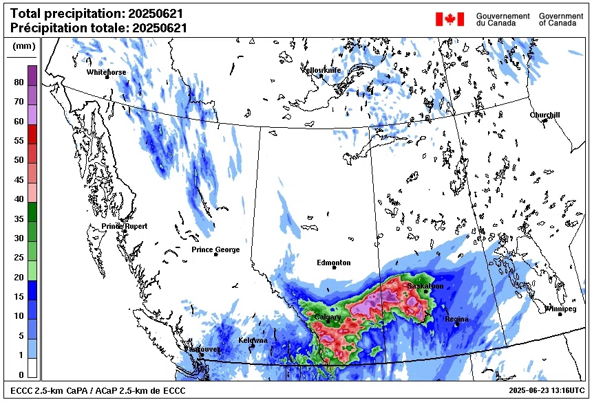 Rainfall and severe thunderstorm warnings came to an end Sunday morning in Saskatchewan. Environment and Climate Change Canada meteorologist Matt Loney says there were several communities in the province with more than 50 millimetres of rain but there was a widespread general rainfall which showered 20 to 30 mm of rain across much of the province.