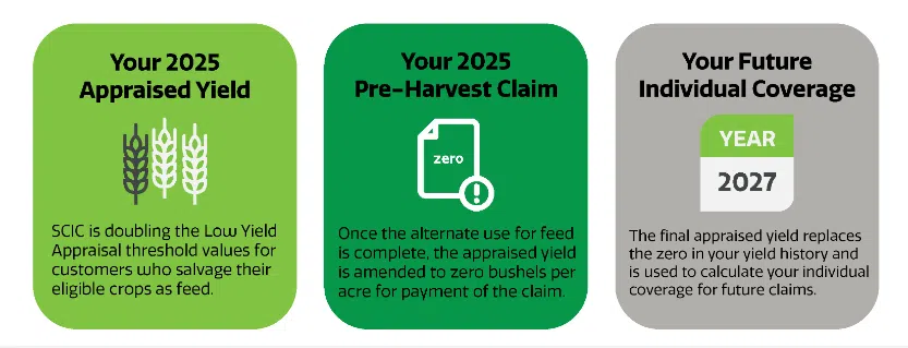 SCIC is implementing the double low yield appraisal process, which means producers will be able to divert acres of low-yielding eligible crops to be made into additional feed available to graze, bale, or silage.