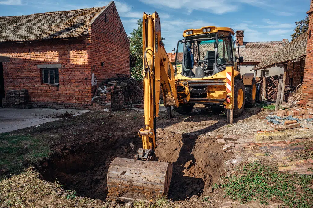 Crews arrived to find a backhoe on its side and leaking fluid.