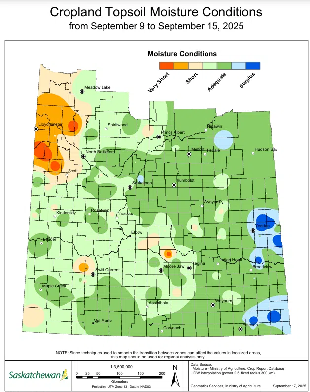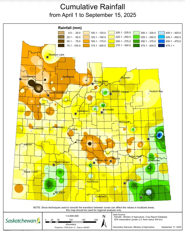 The five-year average is nearly three quarters complete at 73 per cent, while the 10-year average is 62 per cent. The Saskatchewan Agriculture weekly crop report attributes this season’s shortcoming to the impeding rainfall that many areas received between September 9th and 15th.