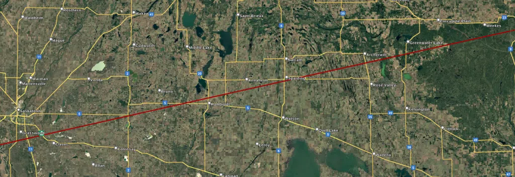 The lifespan of a Starlink satellite is about five years, so a handful are coming down daily. The satellites are about the size of a Ford-150 truck and the vast majority burn up in the atmosphere. The only confirmed report on Starlink debris hitting the earth was an incident on farmland in the Hodgeville region of southwest Saskatchewan in August 2024. The Hodgeville debris was about the size of a laptop computer.