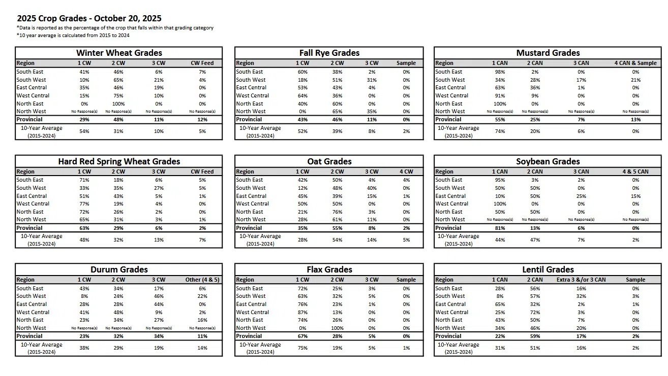 Most cereal and oilseed crops will likely grade either number one or two, but there are some exceptions. Dry conditions followed by late season rain impacted crop quality in the southwest. For example, 18 percent of lentils are estimated to be number three or lower, while 45 percent of durum could be number three or lower.