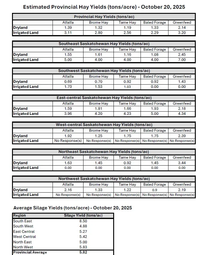 The charts below provide a detailed perspective about crops and forage yields across the province.