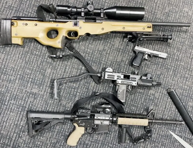Prince Albert RCMP and Prince Albert Police Service CRT’s and the RCMP’s Critical Incident Response Team seized a loaded prohibited pistol, a carbine rifle with no serial numbers and loaded prohibited magazines, a rifle, a replica submachine gun, a conducted energy weapon (commonly known as taser), items associated with drug trafficking like a scale and packaging. As well they seized 300 grams of an unknown white powder which is being sent to Health Canada for further examination.