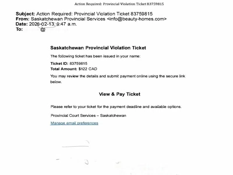 The Dalmeny Police Service is warning people of a Provincial Violation scam circulating via email after receiving complaints from residents.