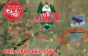CJWW is proud to partner with SaskTIP as we work together to solve their “Crime of the Month.” The February Crime of the Month is “Coyotes Killed By Snowmobiles”. On January 11, Humboldt conservation officers discovered four coyotes that had been pursued and deliberately struck by snowmobiles approximately 11km east of Lanigan. Two of the animals were still alive but severely injured and had to be humanely euthanized on-stie. Evidence collected at the scene indicates that all four coyotes were run over by the same group of snowmobilers.