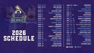 The 2026 W-C-B-L schedule is out, featuring a pair of firsts for the Saskatoon Berries (pictured). For instance, the Berries will start their third season in the summer collegiate loop at home. Weyburn will visit Cairns Field on Saturday, May 30. Saskatoon and Cairns Field will, also, be the host venue for the first-ev...